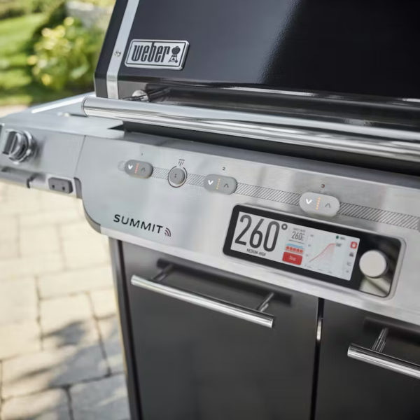 oque e deslize para encontrar alimentos grelhados na perfeição com o grelhador a gás inteligente Summit com ecrã tátil de alta definição. Acenda o grelhador com o ecrã tátil e desfrute da liberdade de o controlar em qualquer lugar através do seu smartphone. Grelhe sem palpites com a tecnologia SmartControl que lhe mostra onde colocar os alimentos e ajusta os níveis de temperatura com precisão. Controle o progresso da cozedura remotamente com as sondas inteligentes incluídas e o seu smartphone: veja gráficos, receba alertas quando o alimento estiver pronto para virar, quando tiver terminado de cozinhar e quando estiver pronto a servir. Tenha acesso a receitas guiadas e muito mais no ecrã tátil ou na aplicação Weber Connect, com novas características e funcionalidades atualizadas regularmente. Para além da tecnologia de ponta, este grelhador está repleto de características que elevam a cozinha e o entretenimento ao ar livre a um novo nível. Prepare bifes com uma deliciosa crosta caramelizada de uma ponta à outra com o queimador por infravermelhos top-down. Explore novas técnicas com um acessório de placa grande (vendido em separado) ou o assador de espeto integrado. Ou transforme o seu grelhador num forno de pizza, wok e muito mais com acessórios personalizados (vendidos em separado), utilizando as grelhas de cozedura e o kit de estrutura WEBER CRAFTED.