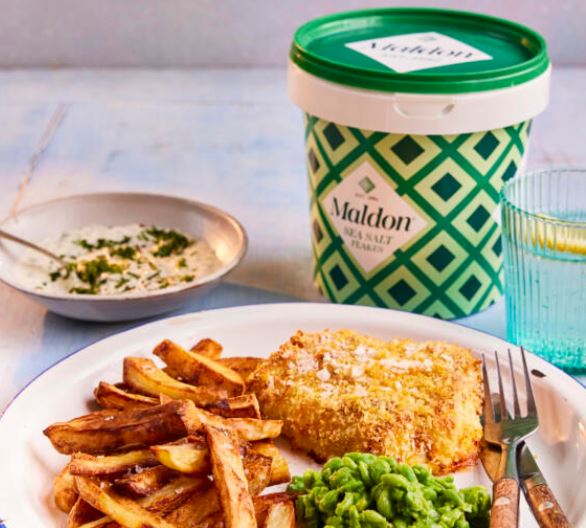 O Sal Marinho Maldon consiste em flocos de sal marinho puros e naturais, conhecidos por seu sabor suave e cristais em forma de pirâmide. É uma escolha popular como sal de cozinha para temperar uma variedade de pratos.